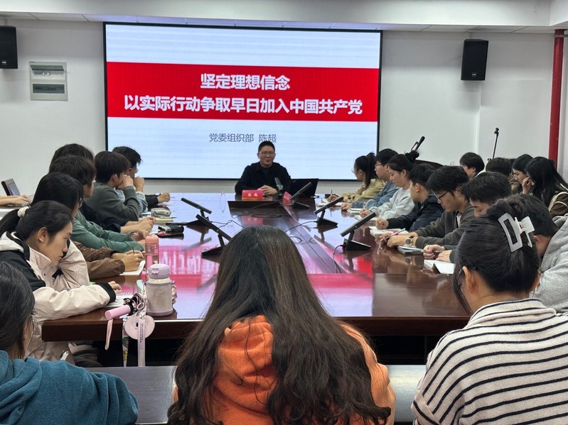 11月6日下午,校党委组织部副部长陈超作《坚定理想信念 以实际行动争取早日加入中国共产党》专题讲座,他结合基层党建案例,勉励学员将理论学习,坚定理想信念,在学习上精益求精、在工作中敢于担当、在生活中服务群众,以实际行动争取早日加入中国共产党。